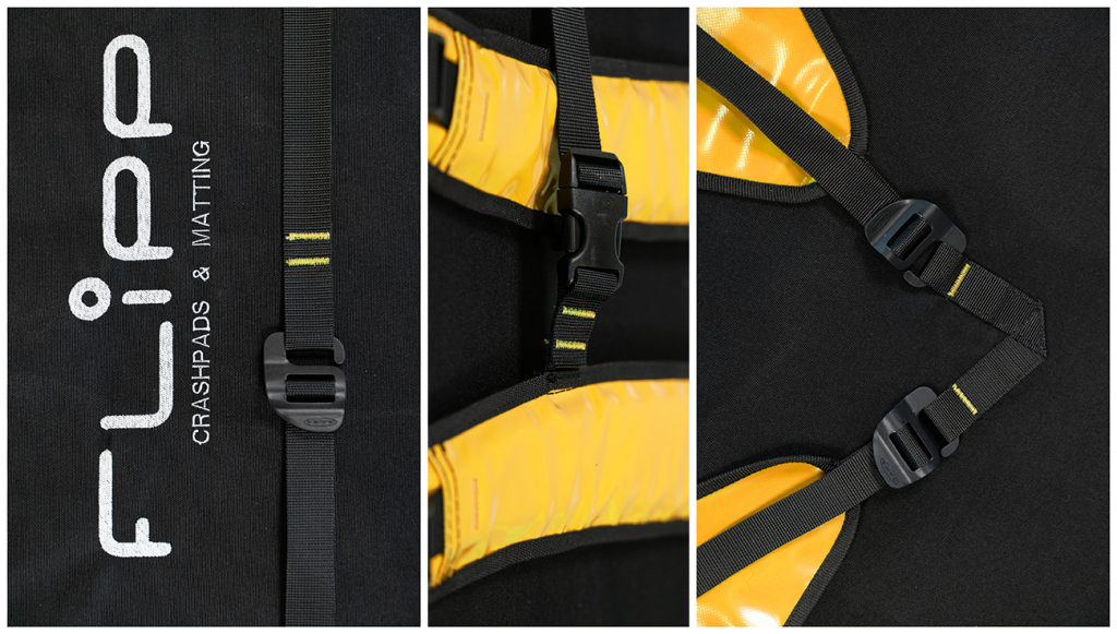 Its three-panel construction ensures stability and flexibility — easy to fold, easy to carry, and ideal for covering rough ground or extending your landing zone. The balanced foam density offers just the right level of cushioning for shorter falls or topping out close to the ground.